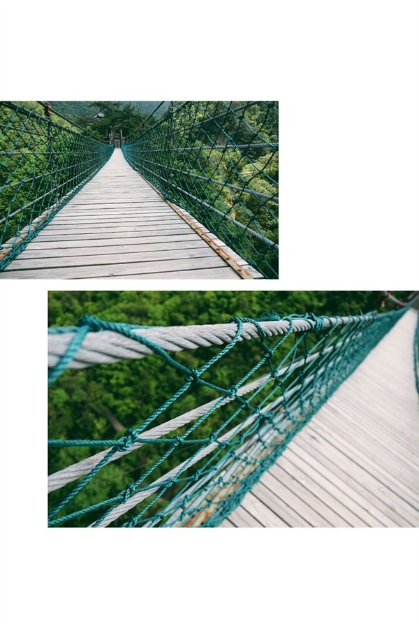 景区里有一座索拉桥,这座桥横在青山之间。站在桥上,微风习习,这山谷里依稀传出阵阵鸟声,清脆悦耳。