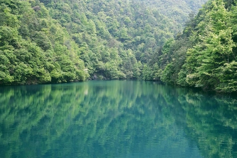 吊桥另一头的山谷里有一个水库,水库碧波粼粼,一汪碧水就像是一颗通透的翡翠镶嵌在山谷里。听说这个水库里还有对水质要求极高的桃花水母,可见这水质之好了。