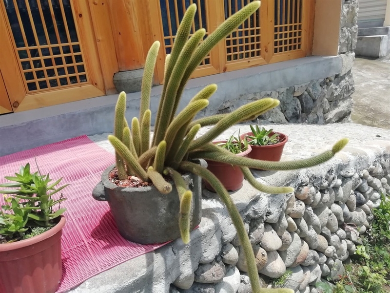 往里走,眼前出现的是一个日式风格的小屋。淡黄色的墙面,橘黄色的木质格栅门窗,用细细密密的线条交织在一起,它所凸显出来的日式极简主义风格的气息特别强烈,在配上门口的线球灯,简单却不失格调。小房子的台阶上摆了几盘盆栽,种上了绿植。有一盘仙人掌长得特别茂盛,它像无数条章鱼的触手一样,从盆里的泥土中张牙舞爪的向外伸展开来,毛茸茸的倒是有几分可爱,想伸手去触摸,看到它的刺还是打消了这个念头。