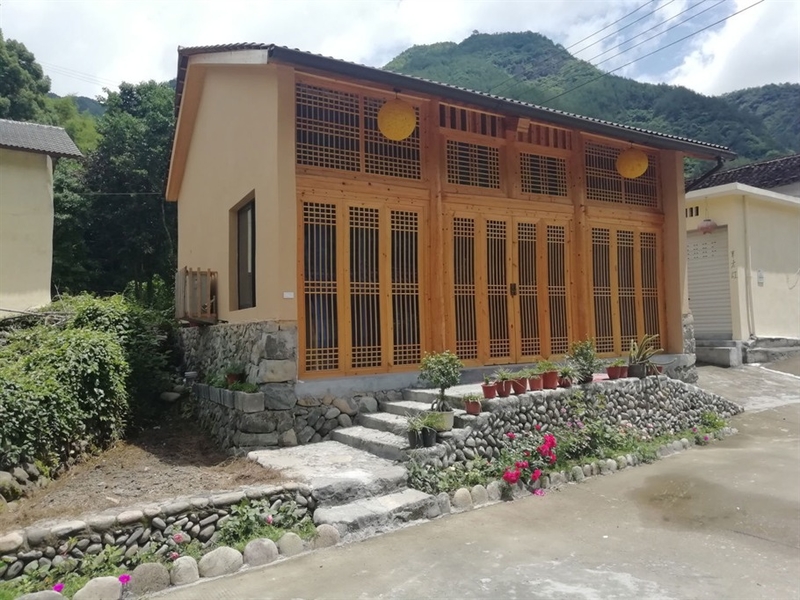 从这条小径下去,绕到后面,有条小路上去,清一色都是那种有历史年代的老房子。大石块混着为数不多的水泥,有些位置仿佛长期经过熏烤已经焦黑如炭。早已经看不清楚它本来的面目。有些部分又是刚用红砖堆砌而成。门口简易的洗水池子上爬满了青苔,也被染成了墨绿色泛着黑。木门已经腐朽残缺,仿佛一用力,就能踹出个大窟窿般,陈旧腐坏。一点也不结实。往前走,地势开始一点点的走高,前面出现的是一个缓坡,见几处陈旧的院墙,院子里长满了杂草。我想这里此前也是一处民居,后可能经过拆改,只留下几处破落的院墙。裸露在外的黄泥墙上到处都是蚕食的痕迹。谁也不知道这堵黄泥墙曾经饱受过多少雨雪风霜,经历过多少摧残才成了这幅模样。从小路返回原路,前面不远处是一处小房子,从整个外形上看是一座供村里人祭拜的寺庙。我在门口观望了一番我便离开了。原路返回,过了桥便到了对岸。