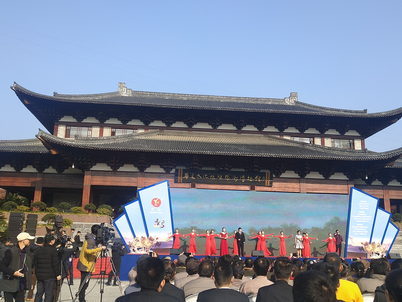 本次根雕艺术节响应了习.近平总书.记提出的共建“一带一路”的倡议,开展了一场别开生面的演出。现场虽然寒风阵阵,但台上一群身穿红裙的姑娘,伴随着高昂的歌曲武动着,将着冬日里的盛宴推向了高.潮。