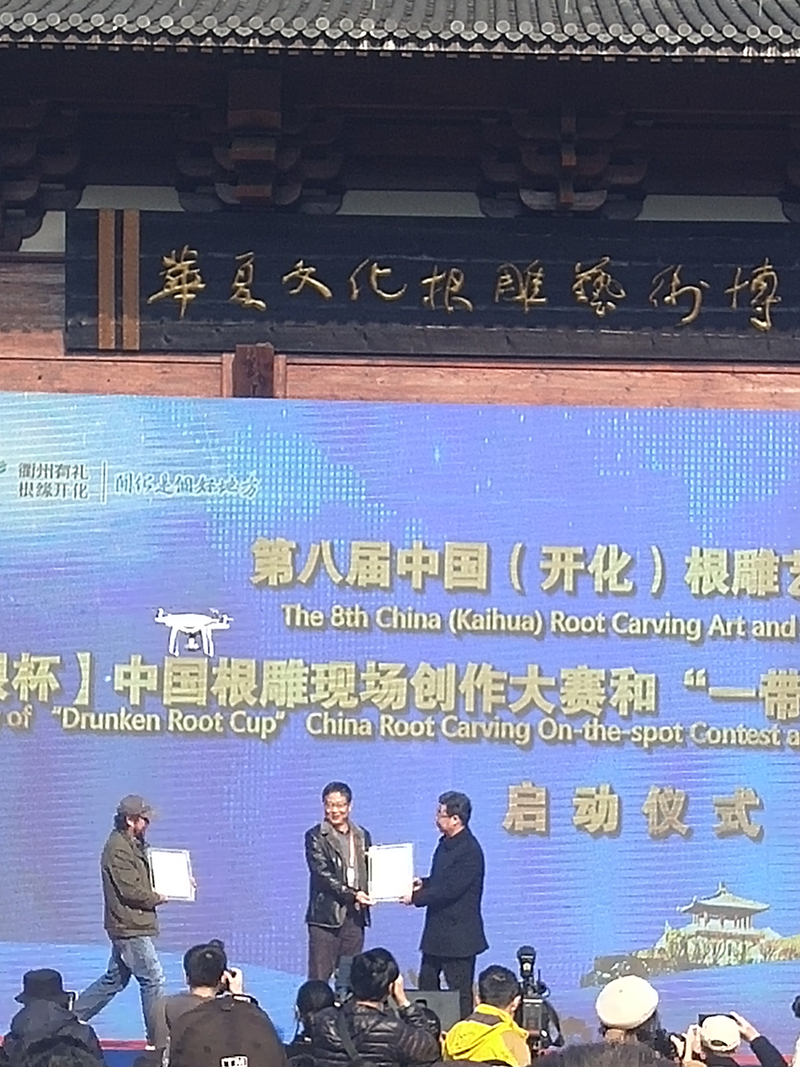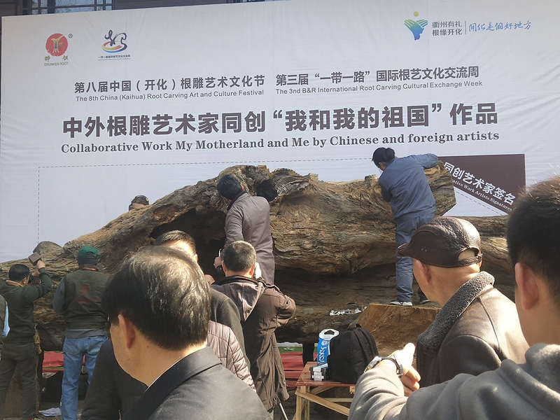 在2019年最后一个月到来之际,第八届中国(开化)根雕艺术文化节——“醉根杯”中国根雕现场创作大赛和“一带一路”国际根艺文化交流周,在浙江开化县隆重举行。节日里的开化根宫佛国文化旅游区彩旗飘扬,人群涌动,到处都是根艺爱好者、根艺从业大师和来游玩的游客。