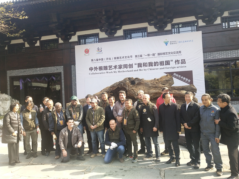 本届根艺节还围绕“中国根雕拥抱世界”的这一主题,邀请了罗马尼亚、伊朗、毛里求斯、老挝、德国、法国等14个国家的十余位根雕艺术家参与现场创作,用不同的工具、不同的创作手法,来展现各自对根雕的理解和创作。使得开化的根雕文化在推进“一带一路”国际合作和经济文化交流中继续发挥着重要的作用。