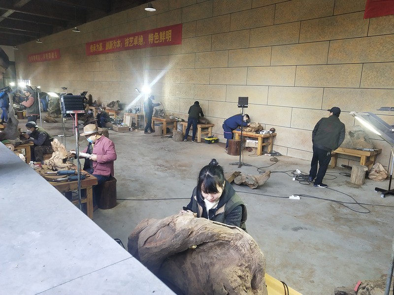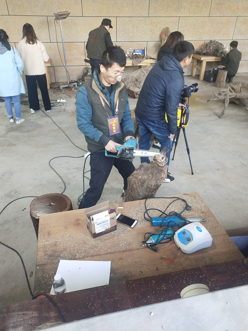另外,本次活动还为了丰富根雕文化内涵,铸就根雕艺术辉煌开展了国际根艺文化交流周创作现场赛,来自全国各地的根艺师们在这里进行热火朝天的比赛,在这里木屑飞舞,机械声四起,空气里还弥漫着一股子木头的芳香,大家都拿出看家本领,细致的琢磨着自己手里的作品。