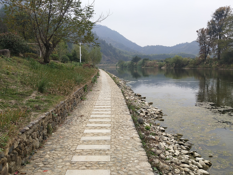 河边的石板路通向远方,越变越小,在远处汇聚成一个点。