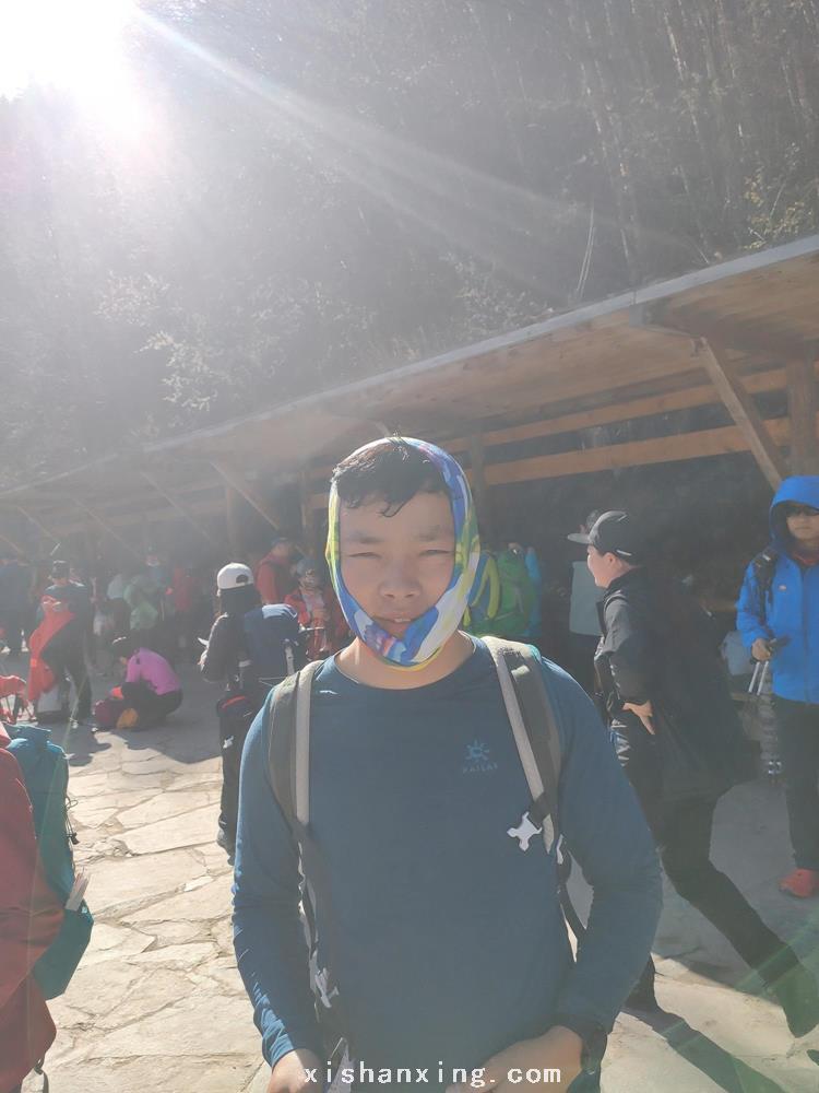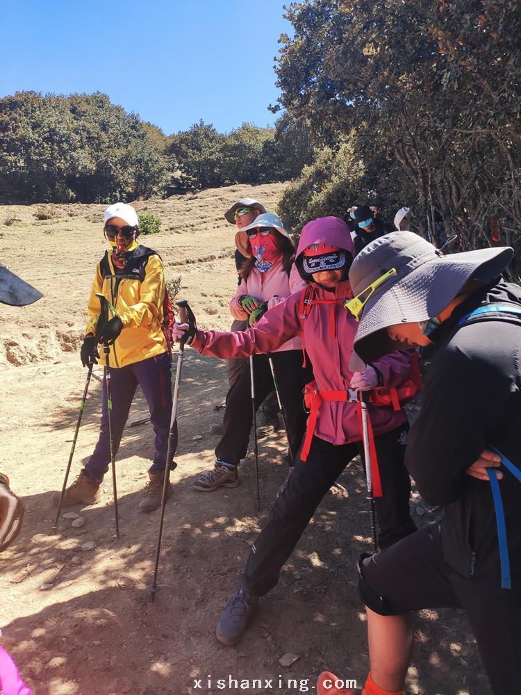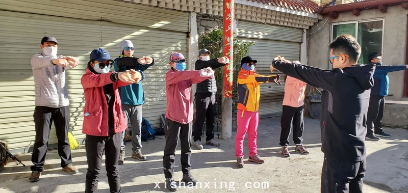 吃了早餐之后,领队带着大家一起做热身运动,准备开始登山了..