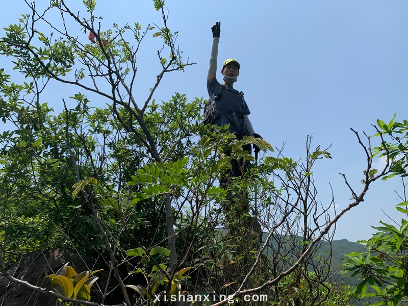 好不容易上到一个海拔600米左右的野山头,就像是一支打了败仗的队伍,终于摆脱了敌人的追赶,黏黏糊糊地没有了精神气,时间已经中午,大家没有吃东西的欲望,说的最多的字就是“水”,水成为了队伍中最宝贵的东西,那种强烈感觉干渴的滋味,现在的人一般都不会经历到。领队的背包里面有一个大大的西瓜,但是,他认为还不是最难的时候,不能打开,他的目标是在前面那个海拔800米的最高峰上面,到达鸬鸟山山顶才能吃。想着水、西瓜,脑海里无由地浮现出战争中军人在战壕里严重缺水的残酷。