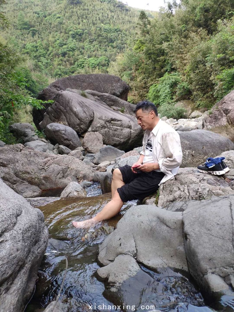 放松心情的队友开始玩水,是那种属于年轻人方式的戏水玩,我算是沾了年轻人的光,享受到了在流动溪水里泡脚的待遇。