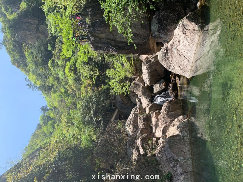 高高的悬崖下,山水在乱石中间奔涌,地理的特殊结构,造就大峡谷内特有形态的瀑布、深潭、彩虹、奇花异草、漂流、滑降等五彩景色,队友行走在游步道上,观景、拍照、登山的同时身体得到锻炼,心灵得到了净化。身处蓝天白云下,山水花鸟间的时候,一切都可以变得简单、浑身感觉轻松,享受到户外活动带来的快乐,抛弃诸多无端的烦恼。