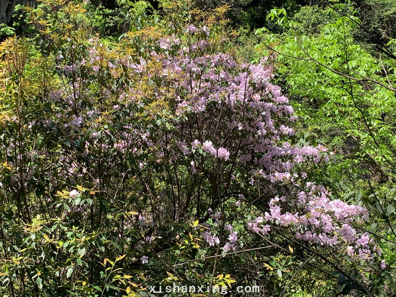 山上长满了各种各样的奇花异草,零零落落红色的映山红犹在,看到了多株那种难得一见,生长在高大树上紫色花瓣的映山红。