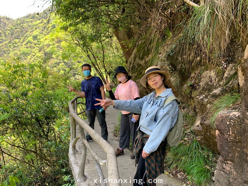 西山行组织浙西大峡谷的活动以自驾方式举行,6辆小车21人的队伍进入景区,为鼓励到当地旅游,沿途享受到高速免费通行、景区免门票的待遇。今天天空晴朗、阳光明媚,气温不高不低非常适宜出游。