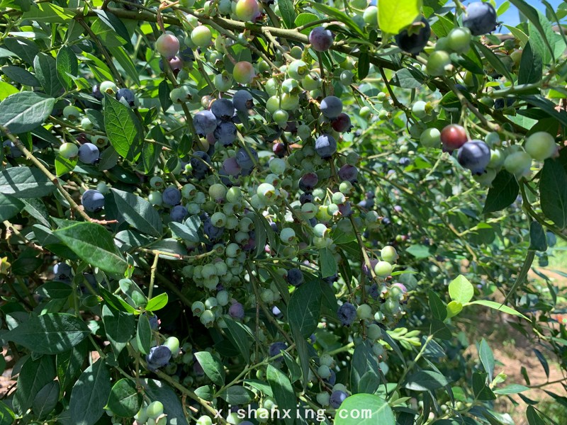 第一次看见蓝莓长在树丛上的模样,一人高的树丛上面都是蓝莓,生涩、红色、蓝色的果实挂满枝头,树丛挤挤挨挨种植的很密,地下密密麻麻都是掉下来的蓝莓,熟透了无人理睬(采摘),只有自己掉地下躺着,可惜了这些掉在地下的蓝莓正是一些最甜最好吃的蓝莓。