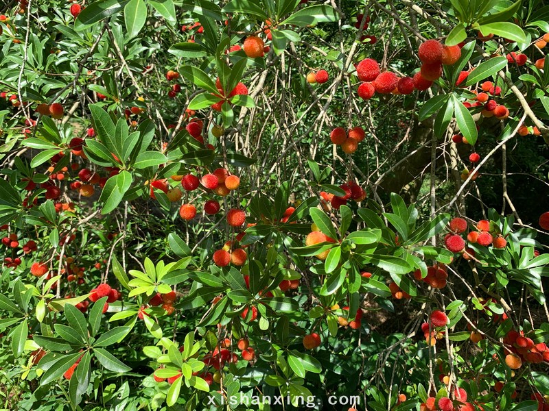 第一次看见这么多挂满枝头的杨梅。感觉新鲜,开始挑黑色的吃,很甜,但是,这样的果实很少,和那些成熟的蓝莓一样的命运,因为无人理睬,大多数都已经掉在了地下,自毁。大多数的果实是紫红色或者微黑,这样的果实泡杨梅酒却是不错的选择,树上还可以看见许多生涩的果实等待成熟。
