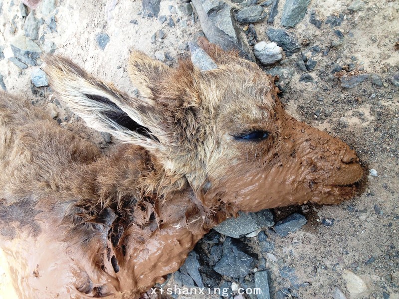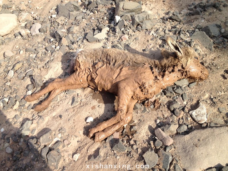 荒无人烟的浩瀚大地上,高山峡谷里是野生动物的天堂,野山羊就是其中数量较多的一个品种,从来没有见到过野山羊的我,头一次见到的却是这一头陷在泥沼里的小羊,小羊嘴里塞满了泥巴,已经窒息死亡。