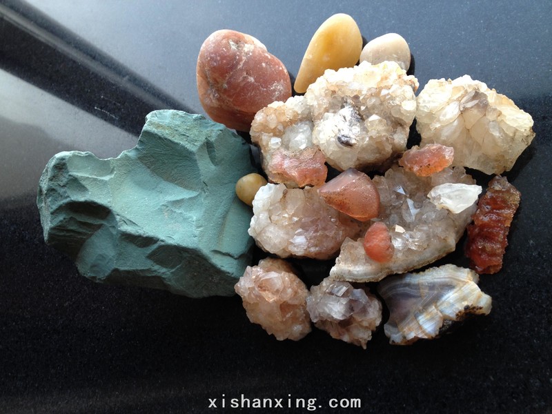 小山羊的眼神挥之不去,一时忘了今天活动的主要内容:捡水晶。走了很多的路程,来到一个叫水晶谷的地方,这是一个神奇的地方,山体的壁上看起来一个个鼓起来石头包打开来里面全都是五彩斑斓的水晶,石包里面大部分的水晶是白色,但是也有紫色、红色、黄色的,晶体的颗粒大小悬殊,大的很大,小的很小。