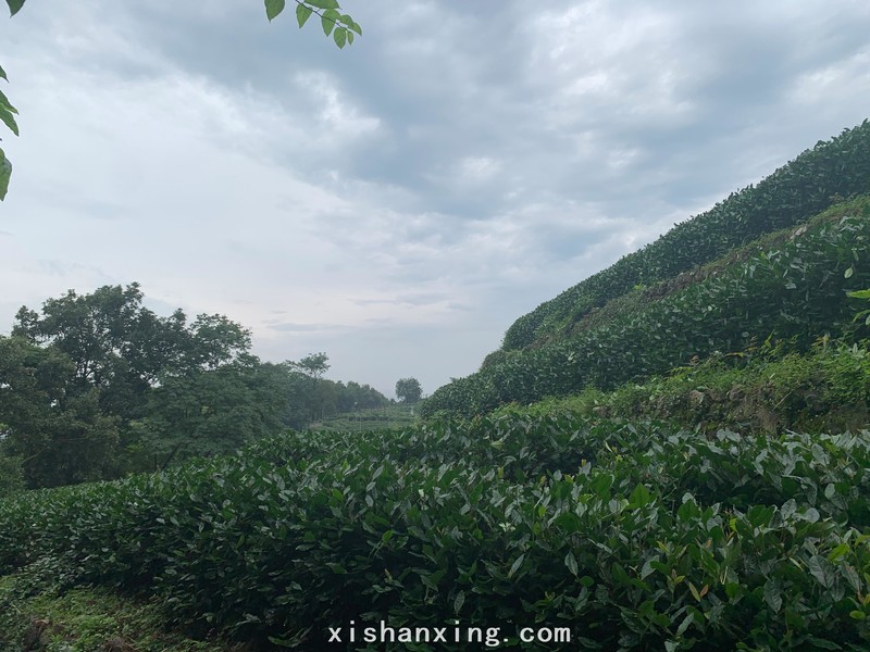 水乐洞里面黑乎乎,湿漉漉的就像刚刚被人从大海里面捞出来的一个盆景。水乐洞出来后没有再走满觉陇路,而是拐向后面的杨家山,一路都是陡峭的台阶山路,沿山路走过烟霞洞,山顶的上面展现出一大片茶树林,此处视野开阔,风景优美。
