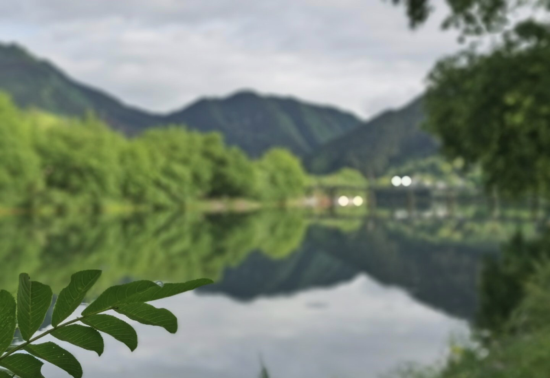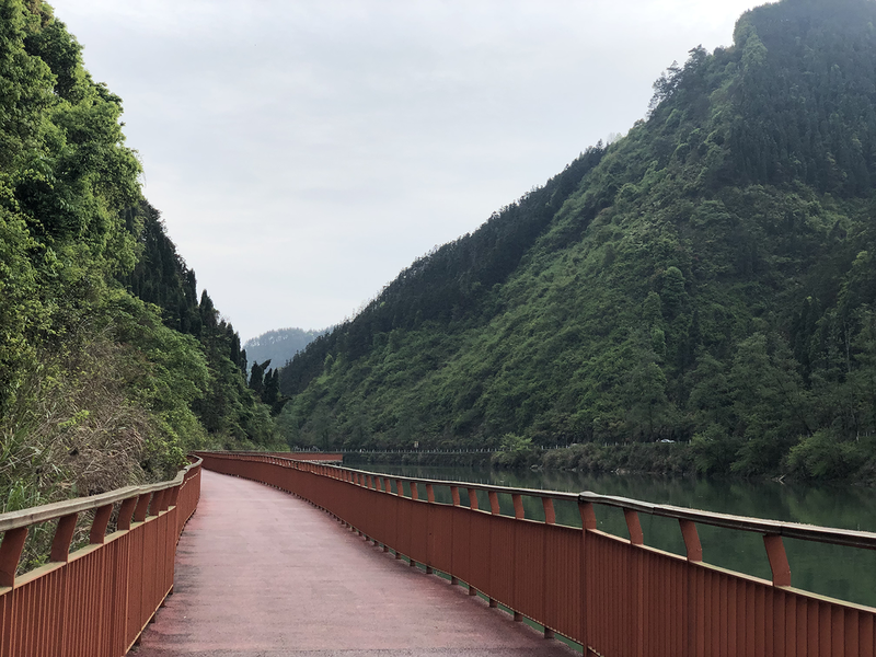 驶过这条柏油路,映入眼帘的就是绿水与青山交织在一起的“桃花源”了。