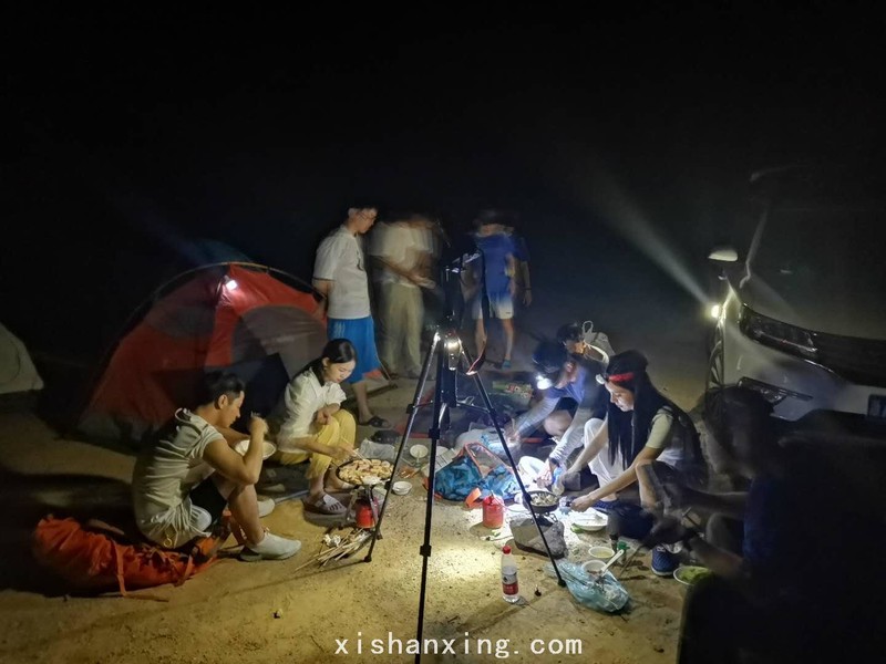 漆黑一片的山坳,因为有山水流淌,便成为驴友露营的好地方,公路旁停满了城里来的小车,水潭附近平整点的地方搭起了帐篷,架起了了汽锅,吃上了烧烤,露营的灯光星星点点。天上的星星越来越多,布满天空,天上的星星和地上的微弱灯光、气炉的火光相互辉映,撕开了山坳漆黑的夜晚,构成了山坳里的夜间景色。这是我跟随西山行活动以来第二次露营,也是我今年的第一次露营,我还是睡在自己的车里面,今天车的天窗很脏,看不清星星,特别是错过了多颗流星划过天空的景象,有点遗憾。