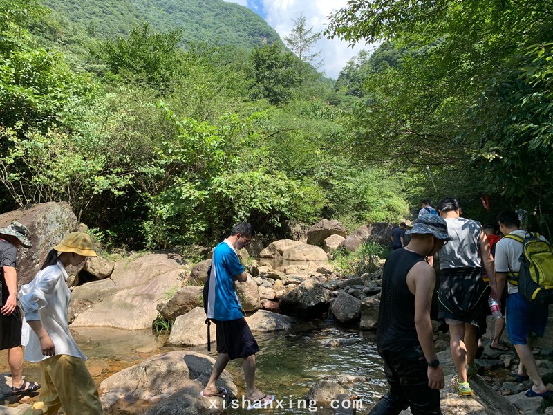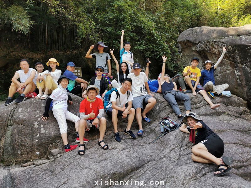不知道经过了多少个大大小小、深深浅浅的水潭,不知道年轻人打了多少个水仗,一路玩水、沿水潭一路向山顶行走、过了好久了,山顶似乎还是很远,据说没有数个小时的时间还是走不到头,时间到了11点左右,领队决定返回,原路返回,还是一路水仗。