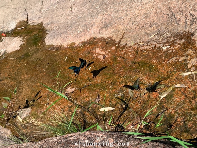 专心玩水年轻人开心之余却忽略了沿途的风景,沿峡谷的溪水的一侧有一条平行的小路,小路淹埋在茂密的竹林中,这是一种直径约5厘米细细的竹林,小路弯弯曲曲,穿行在竹林间,晒不到太阳,有凉风穿过,走一段就会到达峡谷的某一个地方,似乎一下子绕过了好几个水潭。一个浅浅的水洼里,绿色的鲜苔上方三只紫色的花蝴蝶上下翻飞,舞姿优美。峡谷边的茶馆里面看见一鸟窝,三只还没有睁开眼睛的小鸟,张开小嘴嗷嗷待哺。