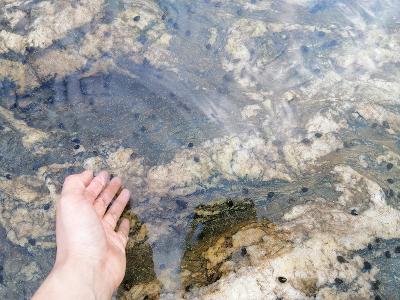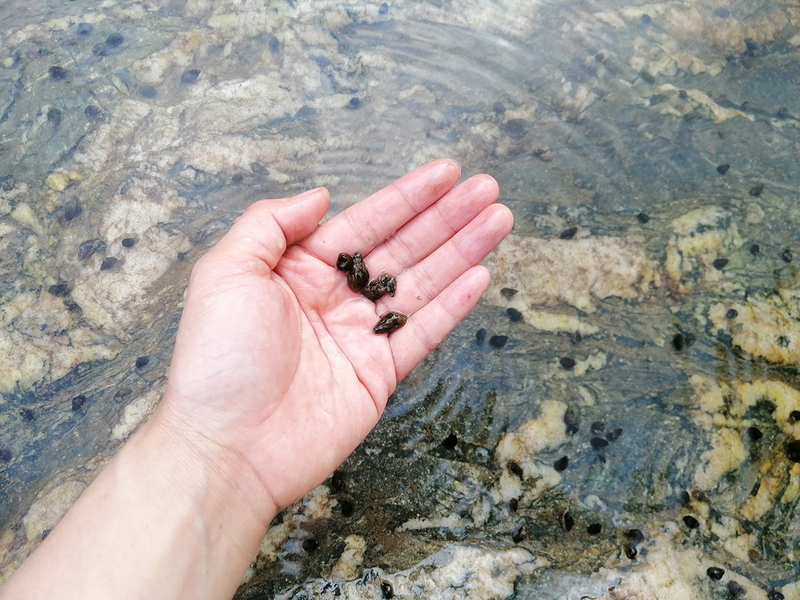 探头往小溪望去,密密麻麻的小黑点依附在石头壁上,没错那就是青蛳,城里菜场最起码30元/斤起卖,加点辣椒,姜片、紫苏一块炒炒,味道鲜美极了。像这种半干不干的小溪,翻开一块小石头,也许还能捕捉到小螃蟹呢!