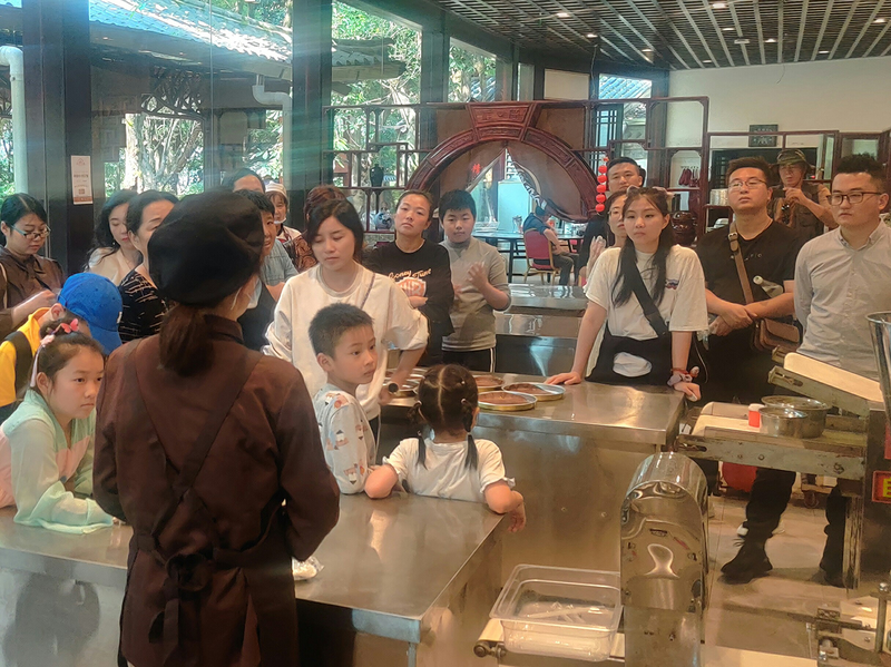 首先,工作人员会向小朋友们和家长们介绍气糕的制作流程。看,大家听得多认真啊!