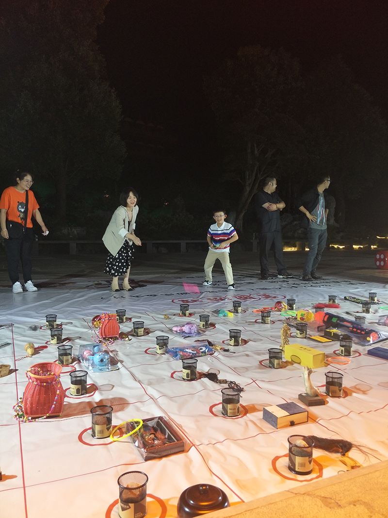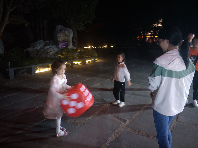 除此美景之外,在童趣园门口可以将夜宴门票折现兑换成套圈(20元/10圈)或者进行玩转大富翁扔骰子赢得奖品,最终的大.奖可是价值580元的根雕艺术品呢,有缘人快来把它带回家吧。