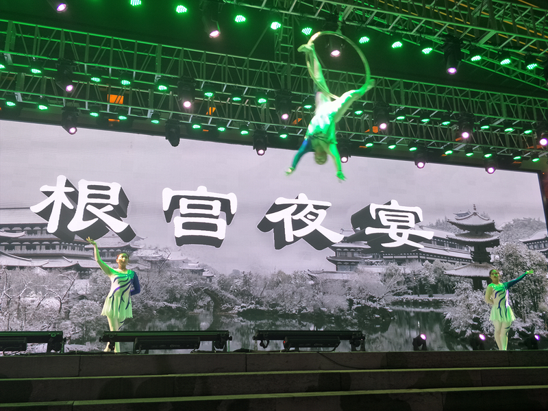 20:30最大的天工演艺广场一层门前民间杂技表演——飞天吊环