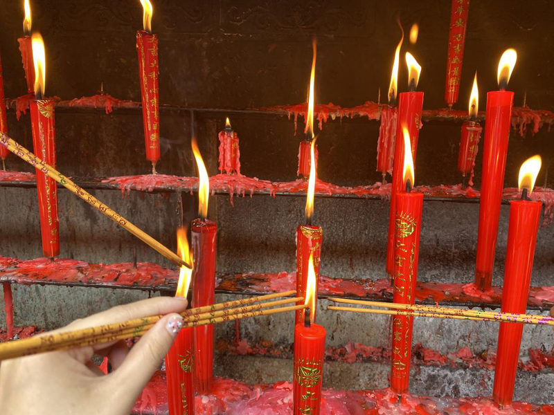 红烛燃香,为表达对佛祖的尊敬及对佛文化的尊重,我和朋友们求来几只香,打算也拜上一拜。