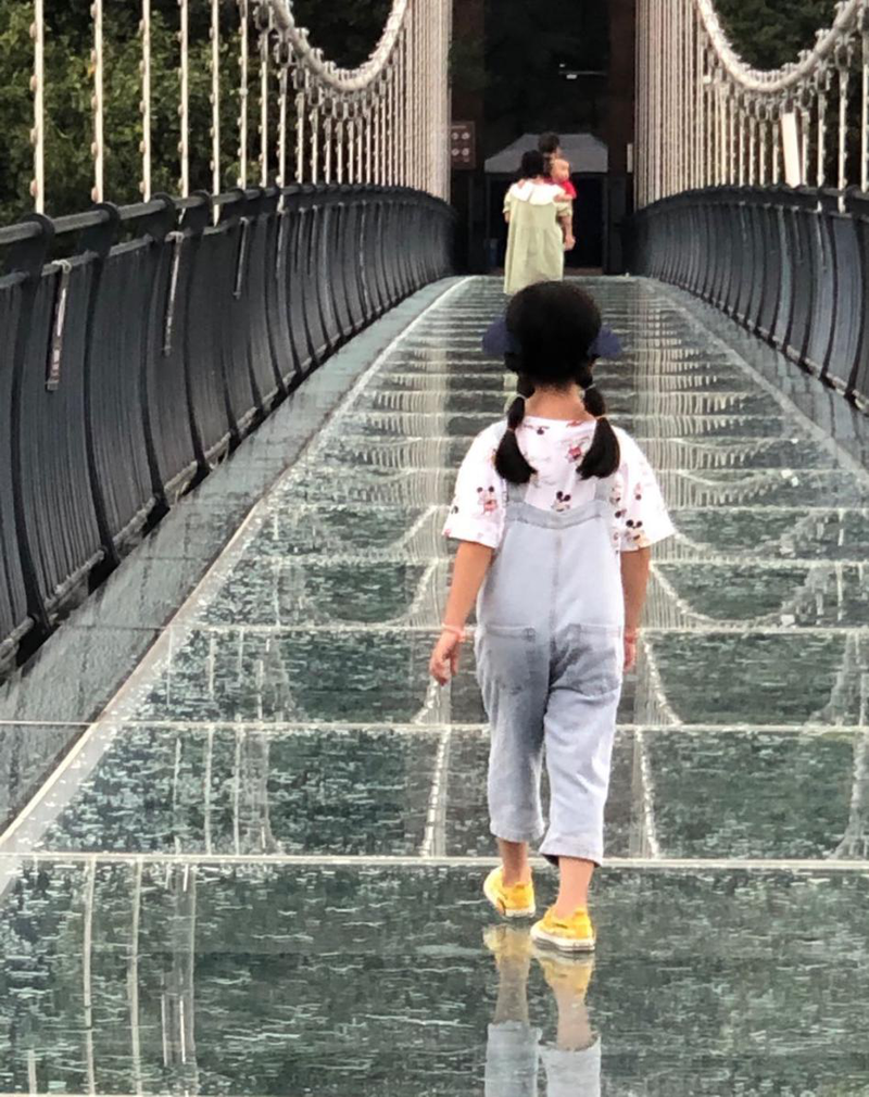 清风徐来,风景在我们脚下,透过玻璃板可以清楚看到。