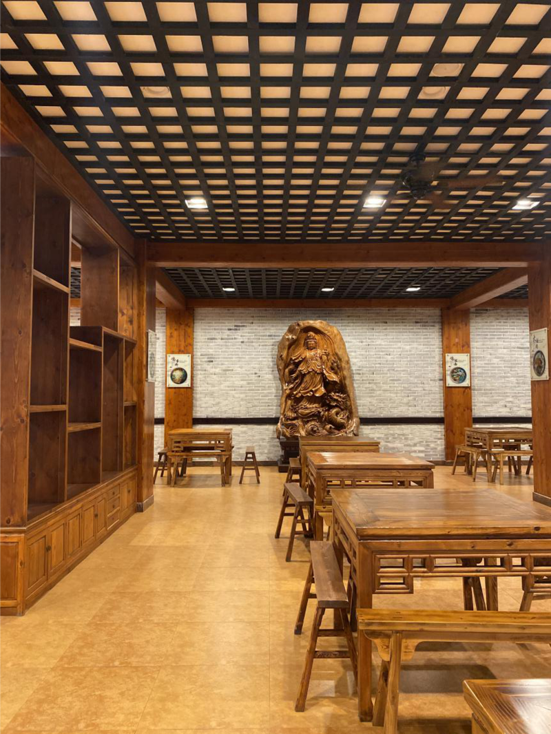 这餐馆设置在景区内,很有根宫佛国的特色。