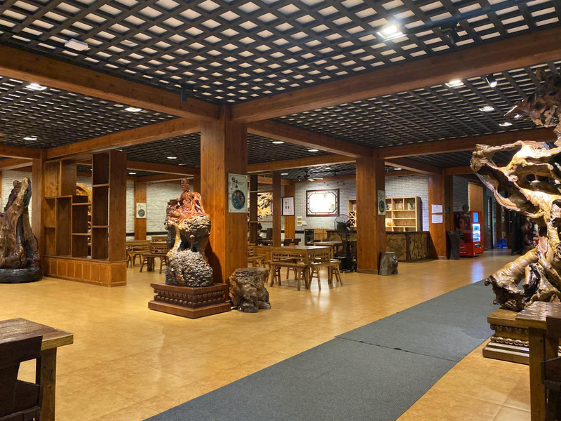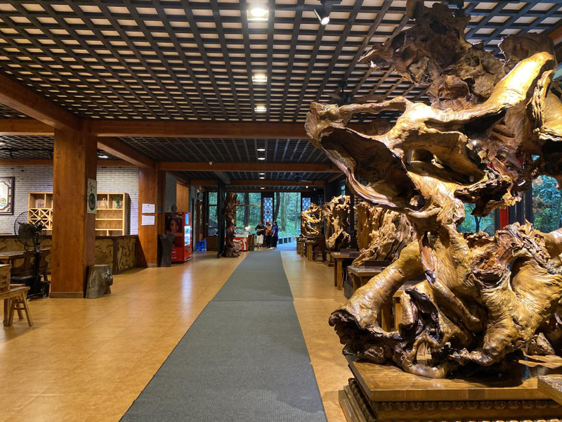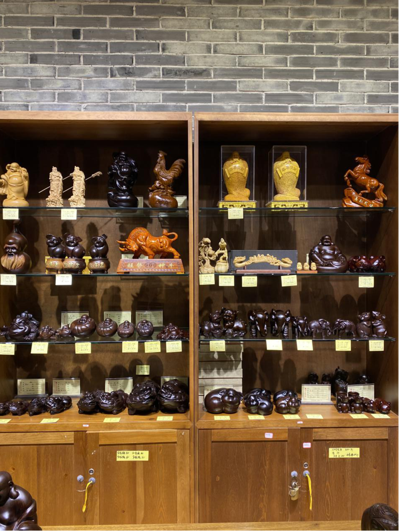 跨过高高的门槛,各式各样的木雕作品林立,属于木材别样的清香扑面而来。