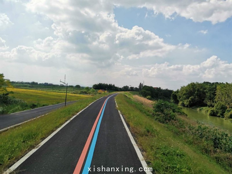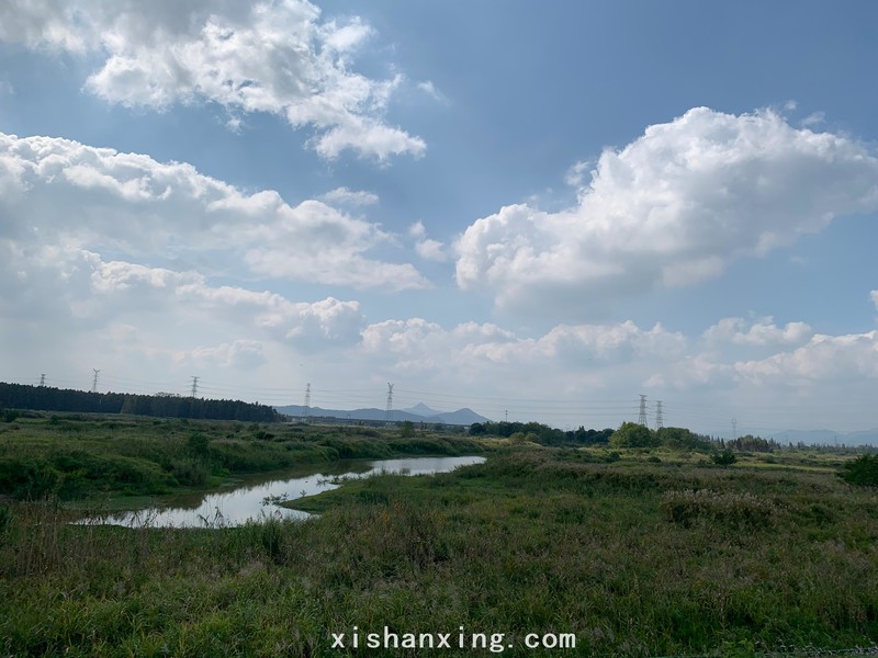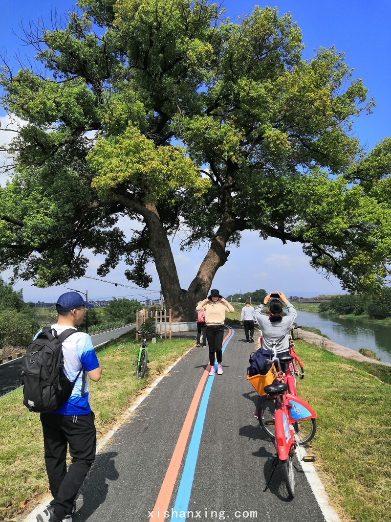 今天的天气特别好,阳光时开时闭,气温不高不低正好,瓦蓝的天空上面白云翻滚,云彩变幻出各种各样漂亮的形状,西山行8个人组成的队伍骑行在苕溪两岸的绿道上,在领队胜哥的带领下,队伍一会儿在河岸的这边,一会儿又去了那边,迷宫一样的绿道,没有人带领一定到不了今天的目的地。
