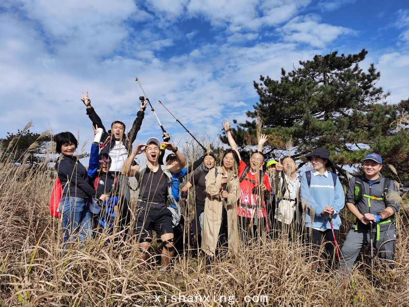 13个队友中有三个领队,90后的年轻人占了一半以上,个个生龙活虎,意气风发,出发令下,便一路如风般地向往山顶飘升。相对年轻人有一对夫妻年龄稍稍大一点,他们两个搭档走的比较慢一点,正好成为安慰我的救星。