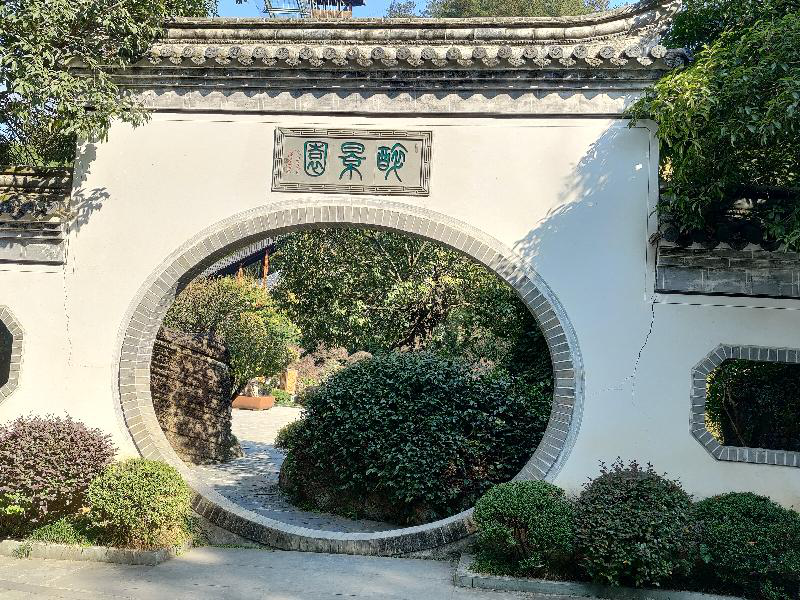 我站于醉景园的门楣之下,青色的文化砖围着椭圆绕了一整个圈形成了个门框。我走进框内,一墙之隔,墙里墙外好像两个季节,左脚冬天,右脚春天,一脚仿佛踏遍了四季而来。听着林中悦耳的鸟鸣声,感受着大自然的魅力。