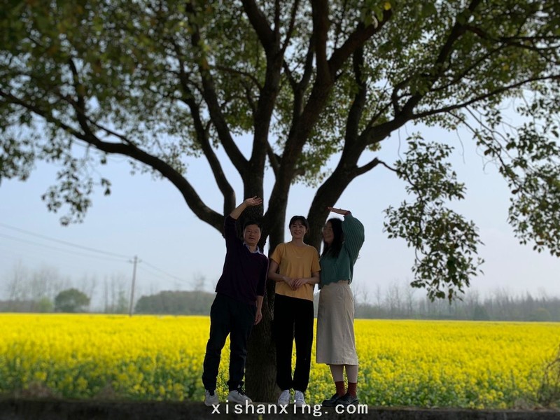 一条土路的两侧大片的油菜花盛开,一条水杉林大道将油菜花田一分为二,这里成为我们第一处拍照的好地方,留下了我和油菜花还有美丽小姑娘的靓丽倩影,感染到的青春气息让人陶醉,和年轻人一起玩的久了真的可以忘记自己的年龄。