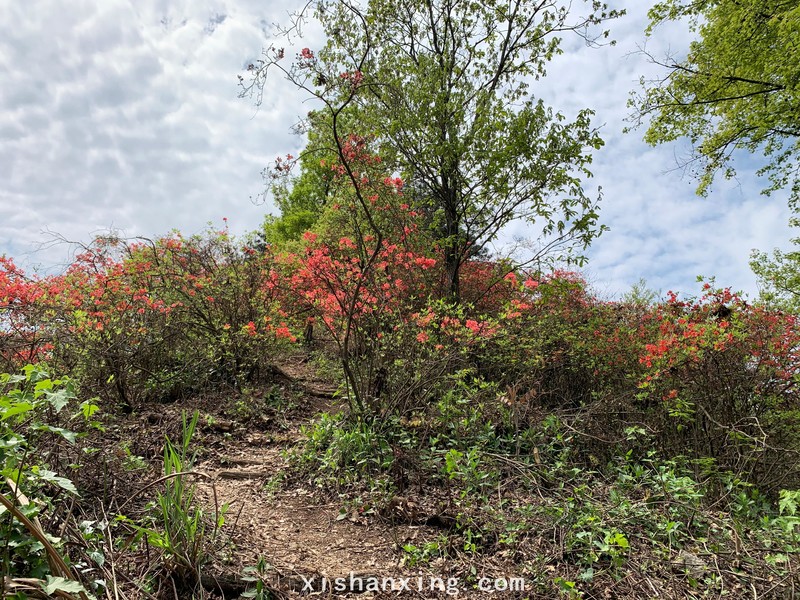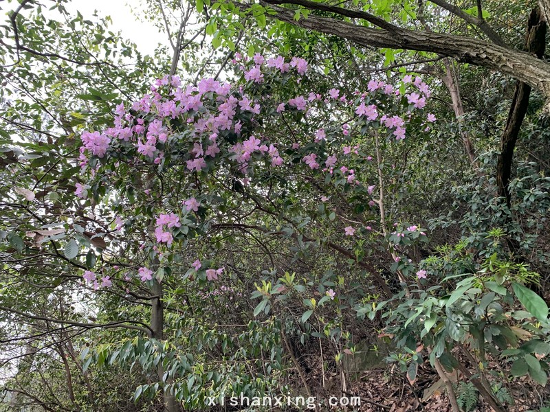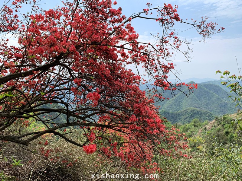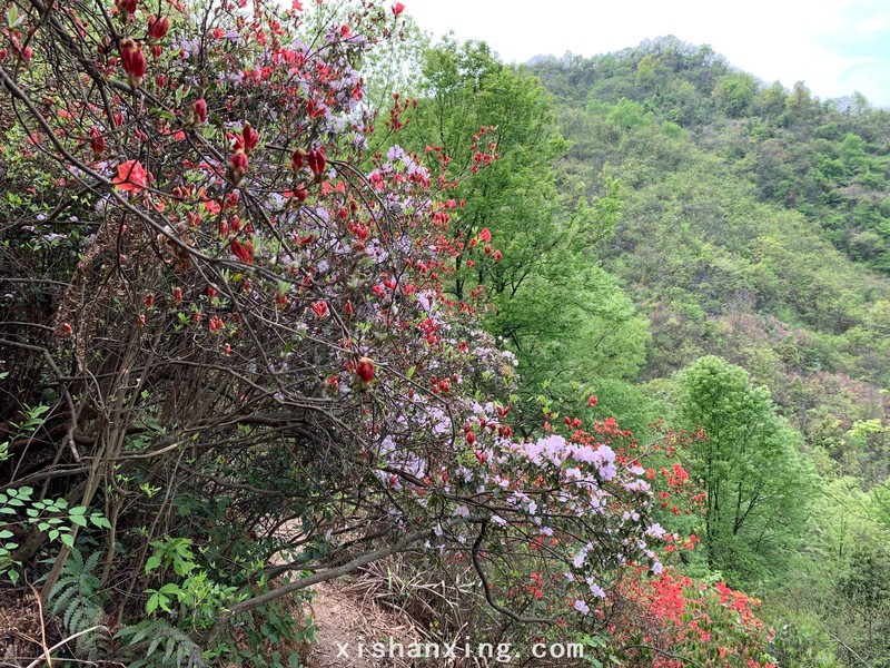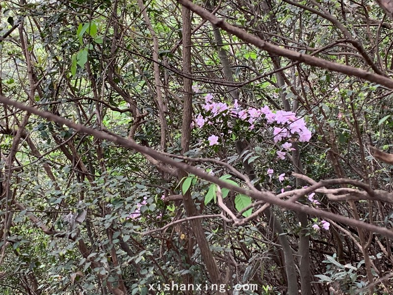 连续三天跟随西山行组织的活动一路行走,打发了无所事事的时间,充实了生活里的内涵,锻炼了身体,陶冶了心情,更开心的是再次亲密接触到大自然,享尽一路美景。三天的行程中皆有一个登山过程,山不算高,海拔高度大约都在3/400米左右,攀登速度不快,有点类似于休闲性质的爬山,让你在体力得到锻炼的同时感觉不累。清明时节野花盛开,红黄青紫的颜色点缀群山,带给你一个春天的美丽。其中开的最多、最旺盛的野花非映山红莫属。第一天从老和云起上山经北高峰、法华寺、走西溪湿地。沿途断断续续可以看见游步道的两侧隐藏在山坡小树从中的映山红,除了红色的花瓣外还可以看见极少数紫色、白色的品种。法华寺下来在老东岳老街上找一家饭馆吃饭