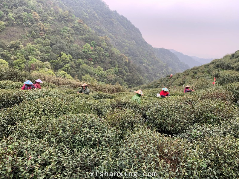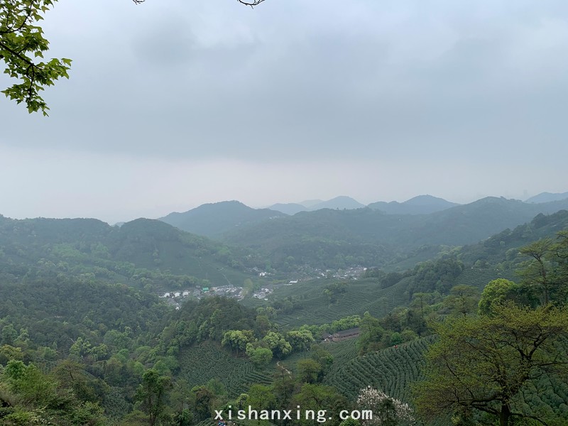 十里锒铛的行程中很大部分是行走在群山的山脊线上,那种长时间行走在山顶的感觉很好,随处一望就可以看见左右两侧的群山,视线可以看的很远,天气好的时候,可以清楚地看见远处西湖和钱塘江,可以看见梅家坞、龙井两个小村庄,随处可见满山的茶叶树。