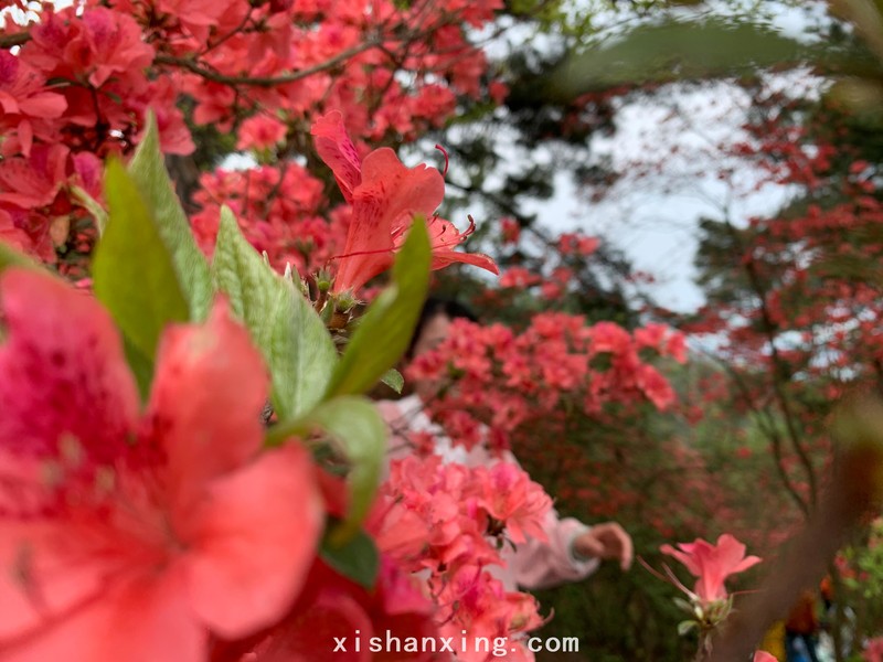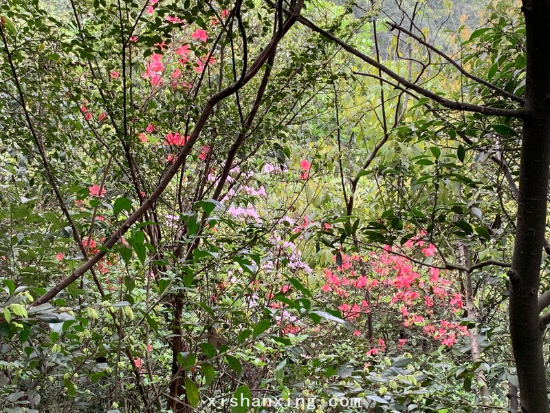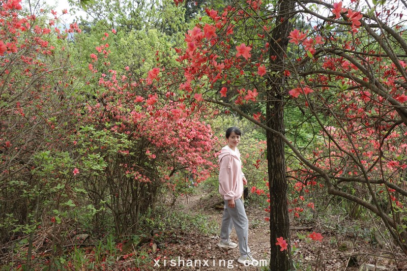 云台山海拔450米,上山下山全程约5公里山路,其中映山红花海的集中地全长约1公里左右行程,在这一公里野山路的两侧,密密麻麻的都是映山红树,人在花丛中行走,让人眼花缭乱,花丛人影中,恍惚看见花仙子来到人间,似乎这里不是一个真实的场景。