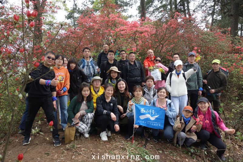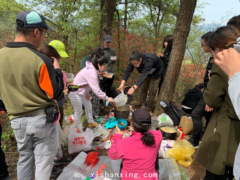今天西山行队友特别地多,8辆车近30人参加了这次活动,来的小妹妹特别地多,给中午的野炊过程增加了热烈的气氛,领队在花丛中选择了一块很大的场地,两口野炊气锅马不停蹄地煮着美食,众人热热闹闹围坐在一起,相互吃着别人带来的美食,在映山红树围绕下的地毯上,一群户外爱好者的野炊远胜过高档餐厅里美食。