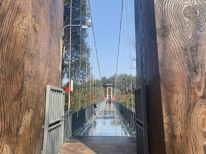 景区门票虽是免费的j但若想上此桥,这你就得掏钱了哦!桥还是那个桥,似乎和其他地方并没有不同,但你走在桥上,整个根博园风景是最独特是的,一切尽收眼底,就连高处的空气都变得那么清新。当你正开心地欣赏着美景时,突然你会发现脚下的玻璃竟然出现了裂纹,莫慌,那只是假象,纯属特别设计,给你别样的刺激!