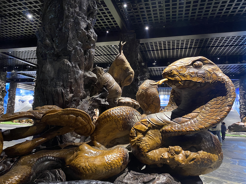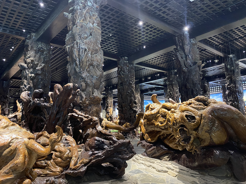 开化根博园又称根宫佛国,主要以盆景、石林、根艺等勾画出一个恬静的天地。刚经过门口便有一块4A级国家旅游风景区的石碑,听闻在2020年12月,根博园凭借着丰富的根雕作品成功挑战了吉尼斯纪录,并被授予“全国最大的根雕博物馆”称号。看来我是来对地方了。