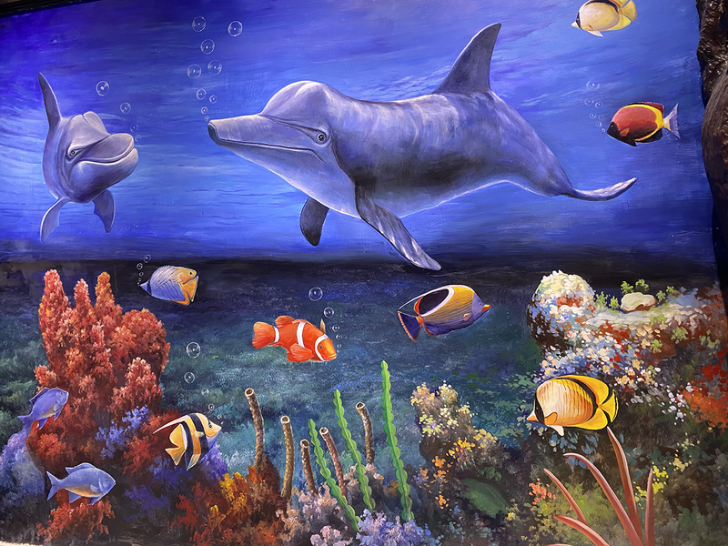 园内也有属于孩子们的一片天地,那便是童趣园。听名字便知童趣多多,乐趣多多,孩子们在这必能收获满满的快乐。“童真”的我进去逛了一逛,果然,园内有孩子们最爱的游乐设施,墙上有海底世界,有海草,有鲨鱼,有石斑鱼……样样都能满足孩子们纯真的童心。除此之外,还有惟妙惟肖的动物王国,蛇、兔、鹿……都聚集于此。仔细瞧瞧,蛇吐露着舌头,盘旋着,身上的蛇皮纹路清晰可见,分为逼真。再来瞧瞧这小兔子,竖着俩只大耳朵,传神的双眸,果真是蹦蹦跳跳真可爱,不得不惊叹于这巧夺天工的技艺!极力推荐携孩子出行的游客来此打卡。
