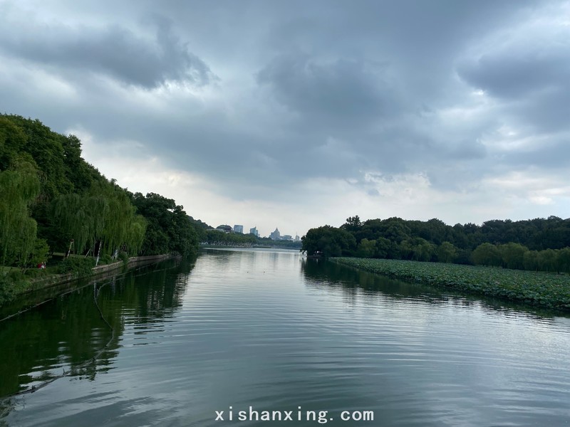 大雨过后,空气特别清新,白堤上面的树木、花草都被洗的干干净净,行走在一条干净又清凉的道路上,而且路上人也少了好多,都是大雨的功劳,给我们今天的行程又增加一道美丽风景。