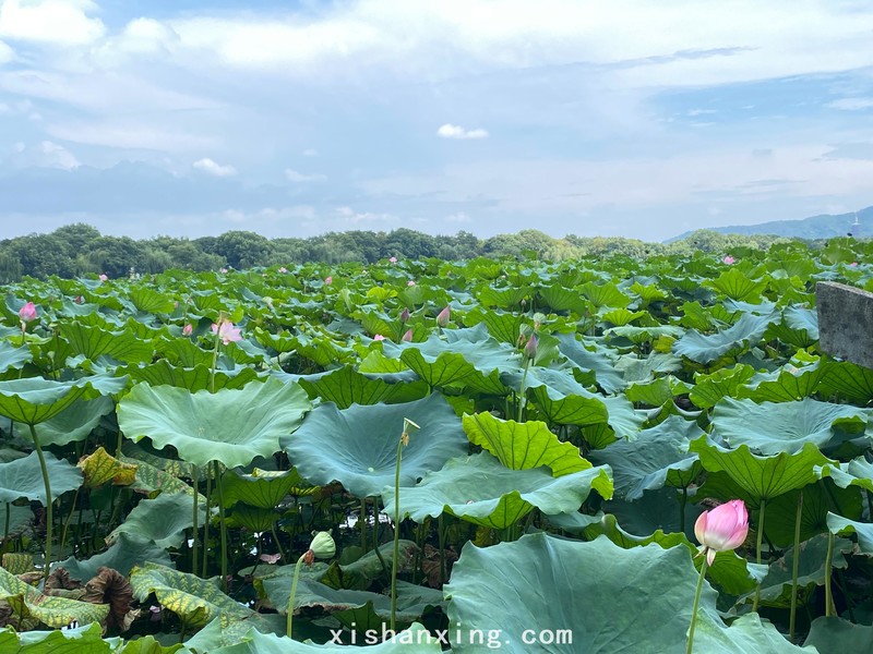 曲院风荷的荷花开的好美,在大片大片绿色荷叶的衬映下红红的荷花更加娇艳。都说岁月无情,这应该是荷花在最后绽放美丽,花朵马上就会凋零,湖边只留下残花败柳。